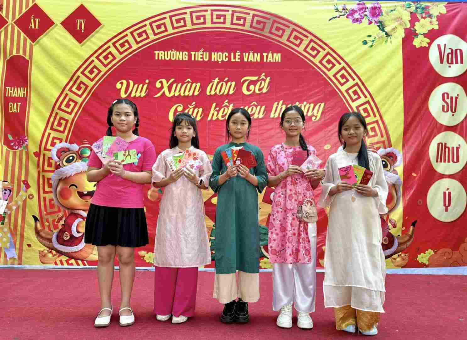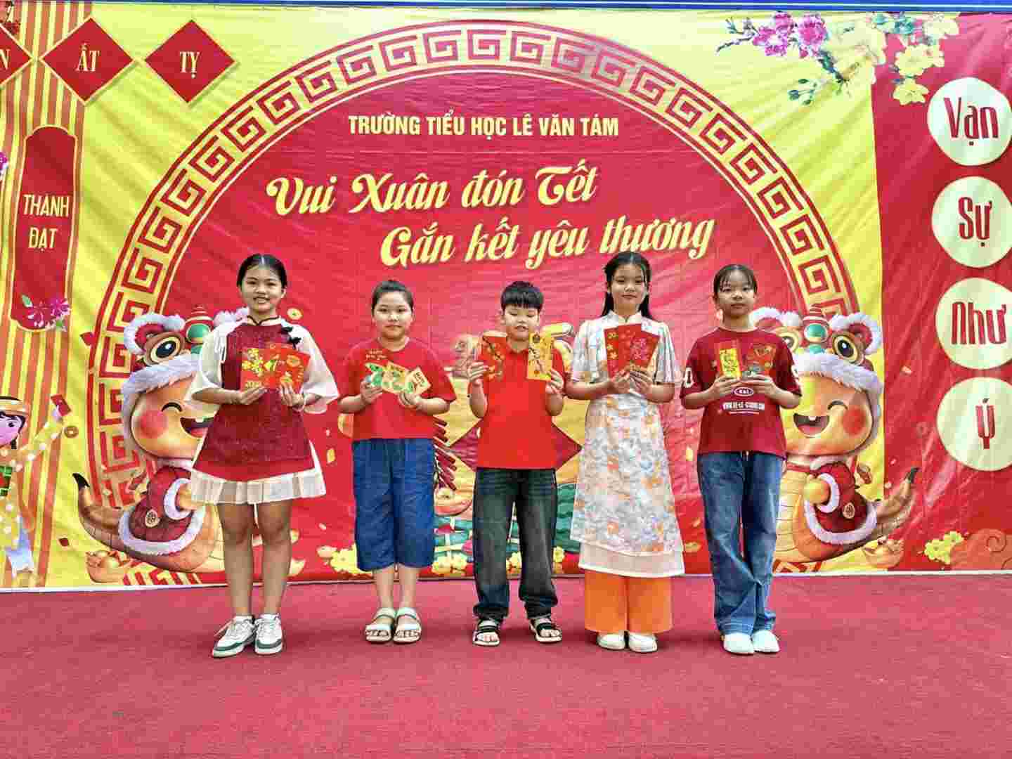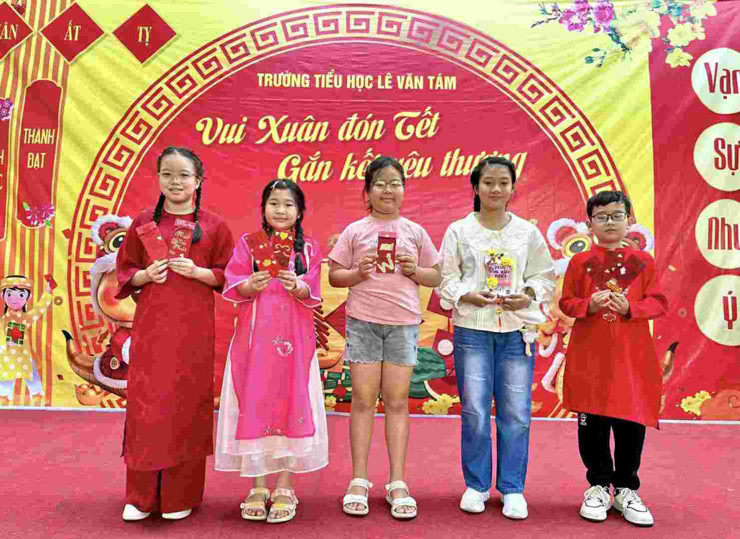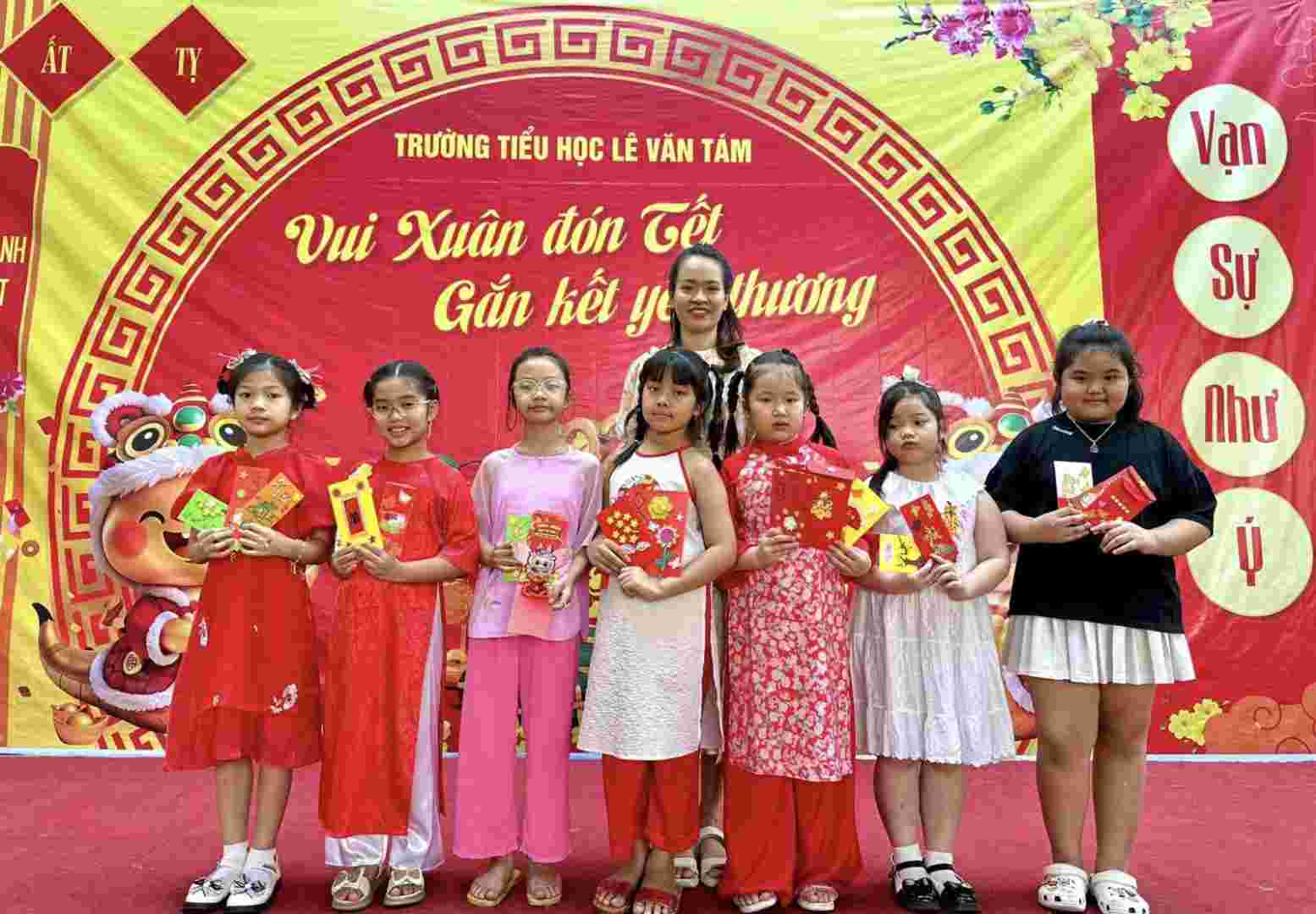 Ngày 21/2/2025, trường Tiểu học Lê Văn Tám tưng bừng không khí Tết với hoạt động thiết kế bao lì xì.